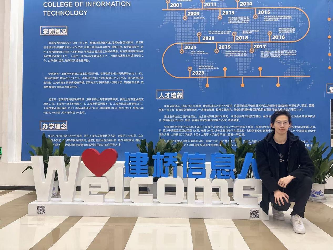邱铖,信息技术学院计算机科学与技术专业2022级学生,共青团员。曾获2025年全国大学生电子设计大赛上海市二等奖、中国国际大学生创新大赛上海市银奖等;参与学院“单木树冠的智能识别与分割算法”课题,发表一篇北大核心期刊论文;目前已被澳门科技大学月球与行星科学国家重点实验室-太空科学研究所-空间大数据分析学硕士专业录取。