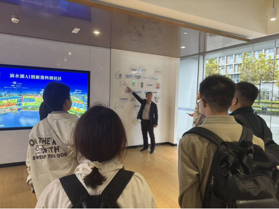 活动尾声,与会嘉宾在张粤磊院长带领下参观了滴水科创园。作为临港滴水湖AI创新港科创驿站的主理单位,上海建桥数据服务有限公司展示了其在大模型数据标注、智能体开发应用、数字化运营等领域的技术服务能力。公司及产业学院设立的“大模型工程中心”和“智能体工程中心”,为企业提供从场景合规到技术落地的闭环支持,受到现场企业家的广泛关注。