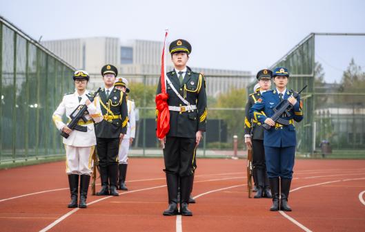 晨光熹微,微风轻拂。在全体师生的注目礼中,国旗护卫队队员身着整齐制服,迈着铿锵有力的步伐,以挺拔昂扬的身姿护送五星红旗走向升旗台。当激昂的《义勇军进行曲》奏响,鲜艳的五星红旗迎着朝阳冉冉升起,猎猎红绸在晨风中舒展飘扬。在国旗升起的瞬间,科技强国的信念在全体师生心中翻涌升腾,大家心潮澎湃,满是对信息报国的炽热豪情。