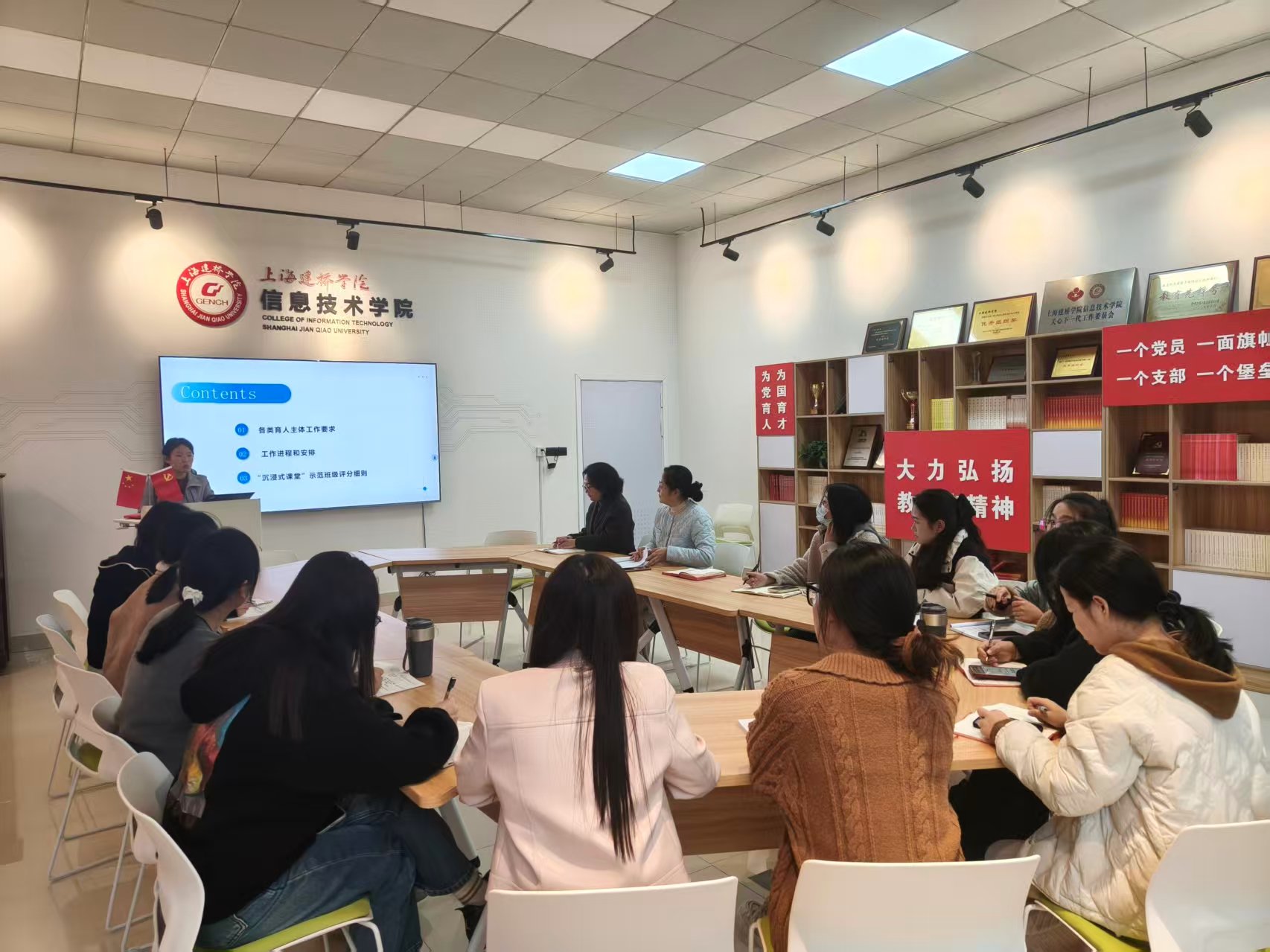 徐娜总结强调,“沉浸式课堂”建设是学校深化学风建设、提升人才培养质量的重要举措,更是学院营造优良育人氛围的关键抓手。各辅导员需切实提高思想认识,深入研读文件要求,精准把握工作重点;要及时向学生全面解读“沉浸式课堂”建设的意义,统一学生思想认知,鼓舞学习士气;要强化课堂自查力度,密切关注学生课堂出勤、学习状态等情况,严格规范课堂管理;要深入把握“四个一”工作要求,扎实做好推送宣传与材料归纳整理工作。