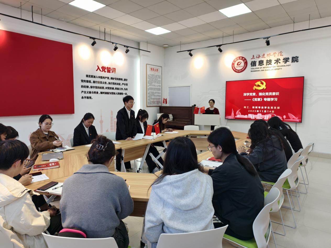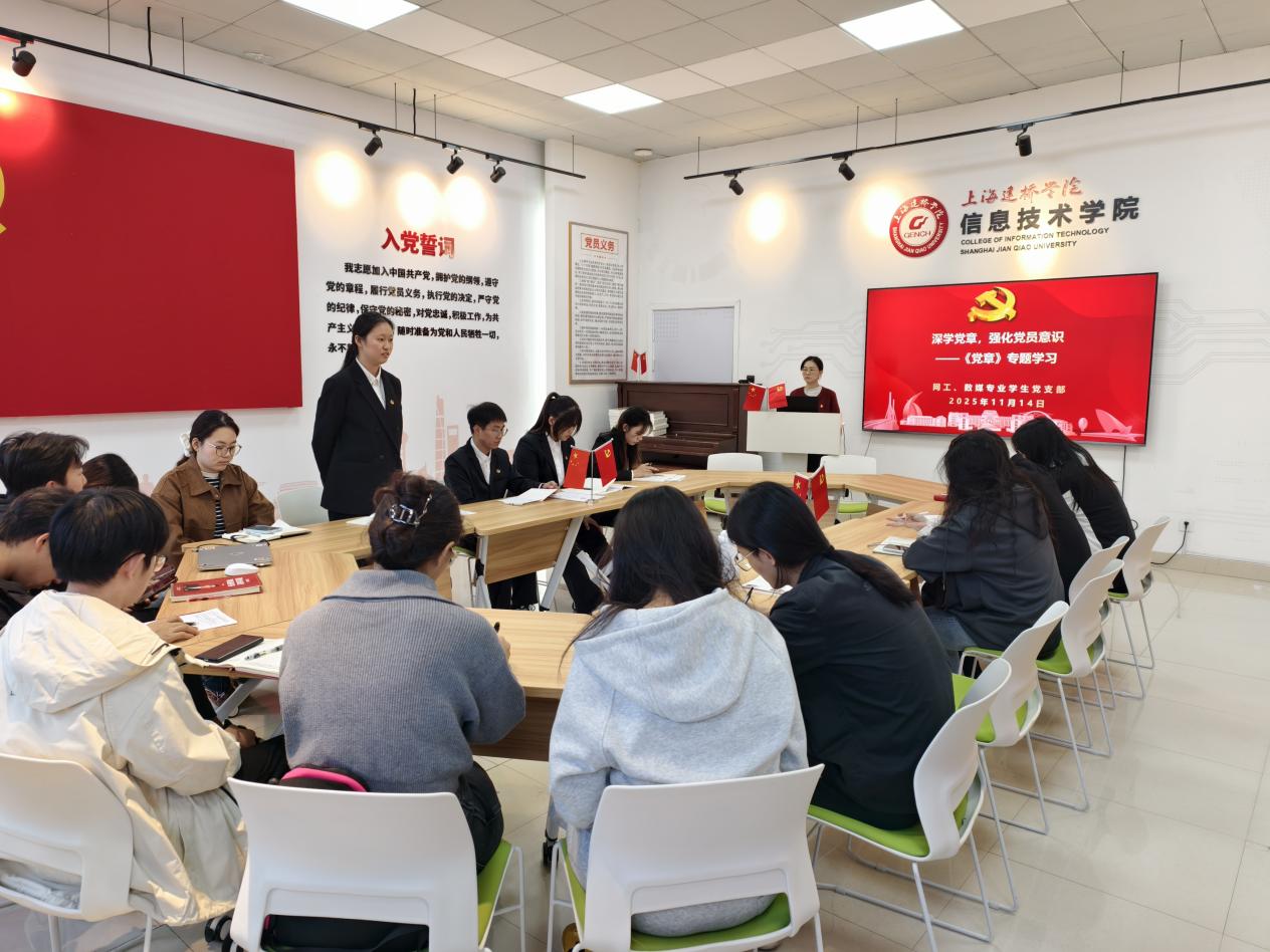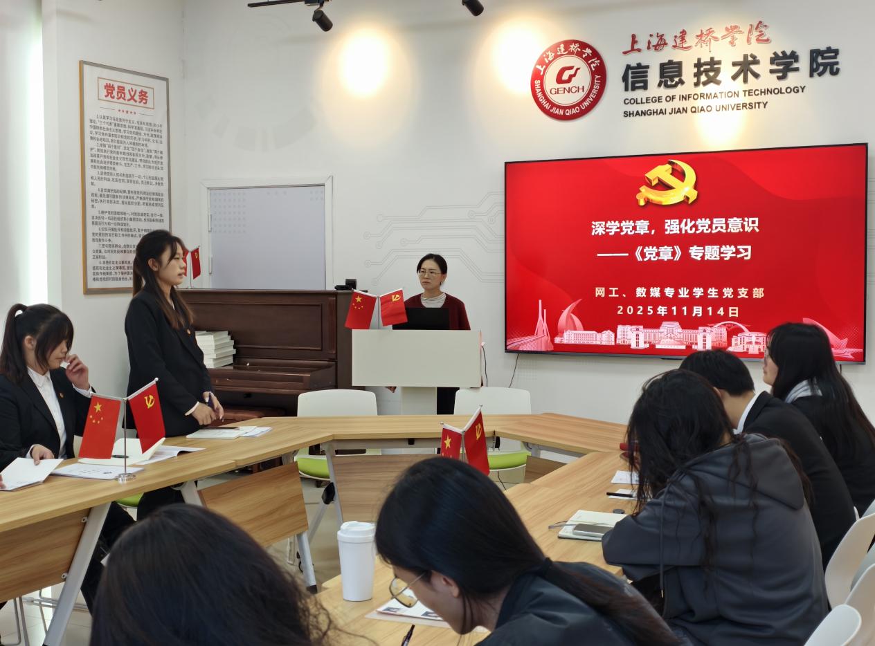 为深入学习贯彻习近平新时代中国特色社会主义思想,进一步加强党员教育管理,持续提升支部党员的理论素养与党性修养,引导全体党员在重温光辉党史、深学党章党规中坚定理想信念、汲取前行力量,11月14日,信息技术学院网工、数媒专业学生党支部在信院111举办11月组织生活,围绕《中国共产党简史》与《中国共产党章程》开展专题学习。会议由党支部书记李苗同志主持,支部全体成员参会。