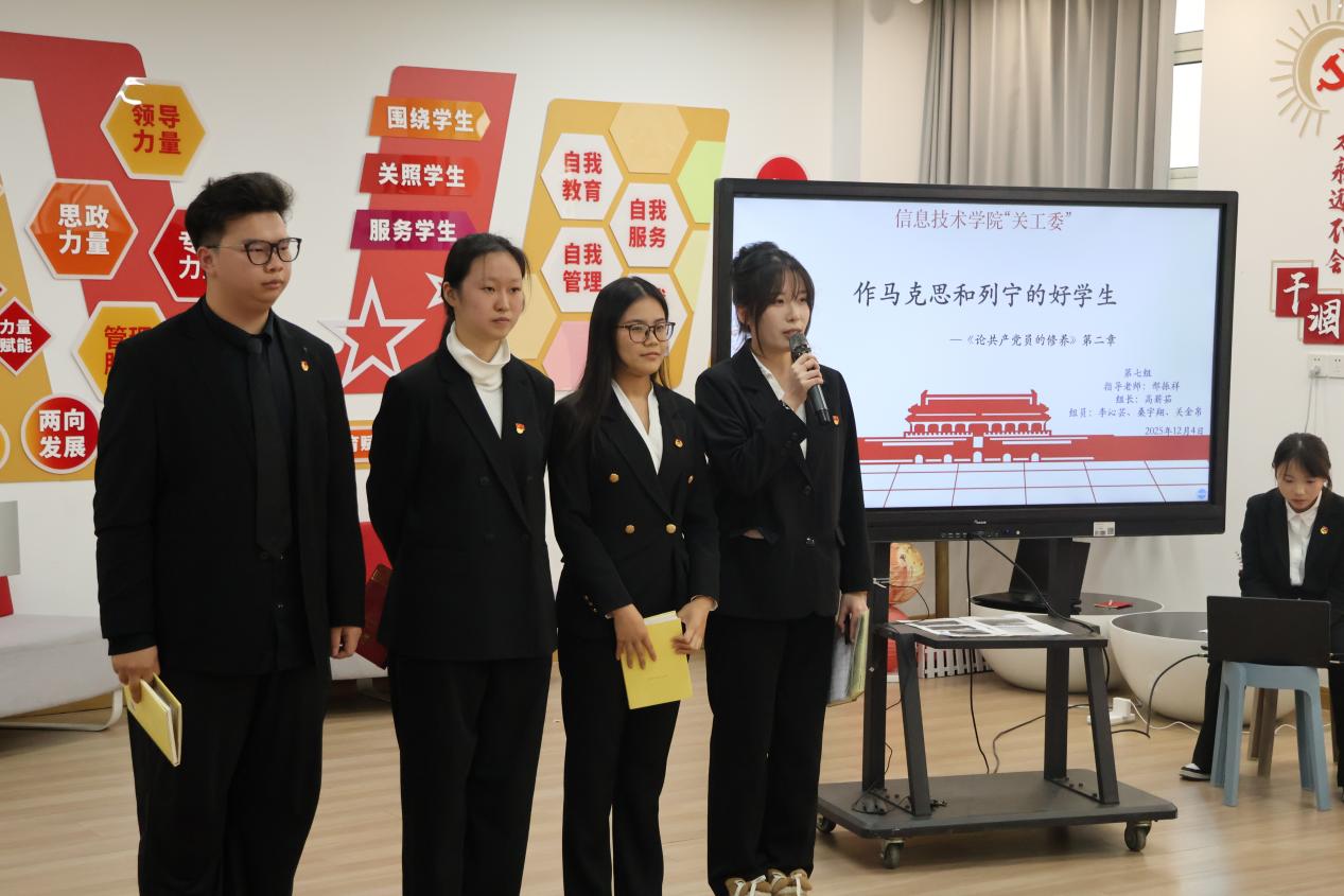 为传承红色基因,深化青年学子对马克思主义理论的理解与践行,搭建“五老”与青年一代的思想交流桥梁,12月4日,信息技术学院关工委“‘五老’匠心育桃李,‘青马’笃信谱华章”暨青年马克思主义学习坊交流研讨总结大会在北78二楼公共空间举行。学院党委副书记徐娜,关工委“五老”成员,青马坊指导老师章连英,关工委秘书黄迪,社区辅导员濮春婷,以及青马坊全体学员、社区学生骨干共同参与,齐聚一堂共话成长、共谱华章。大会由青马坊学生主任邱小鹏主持。