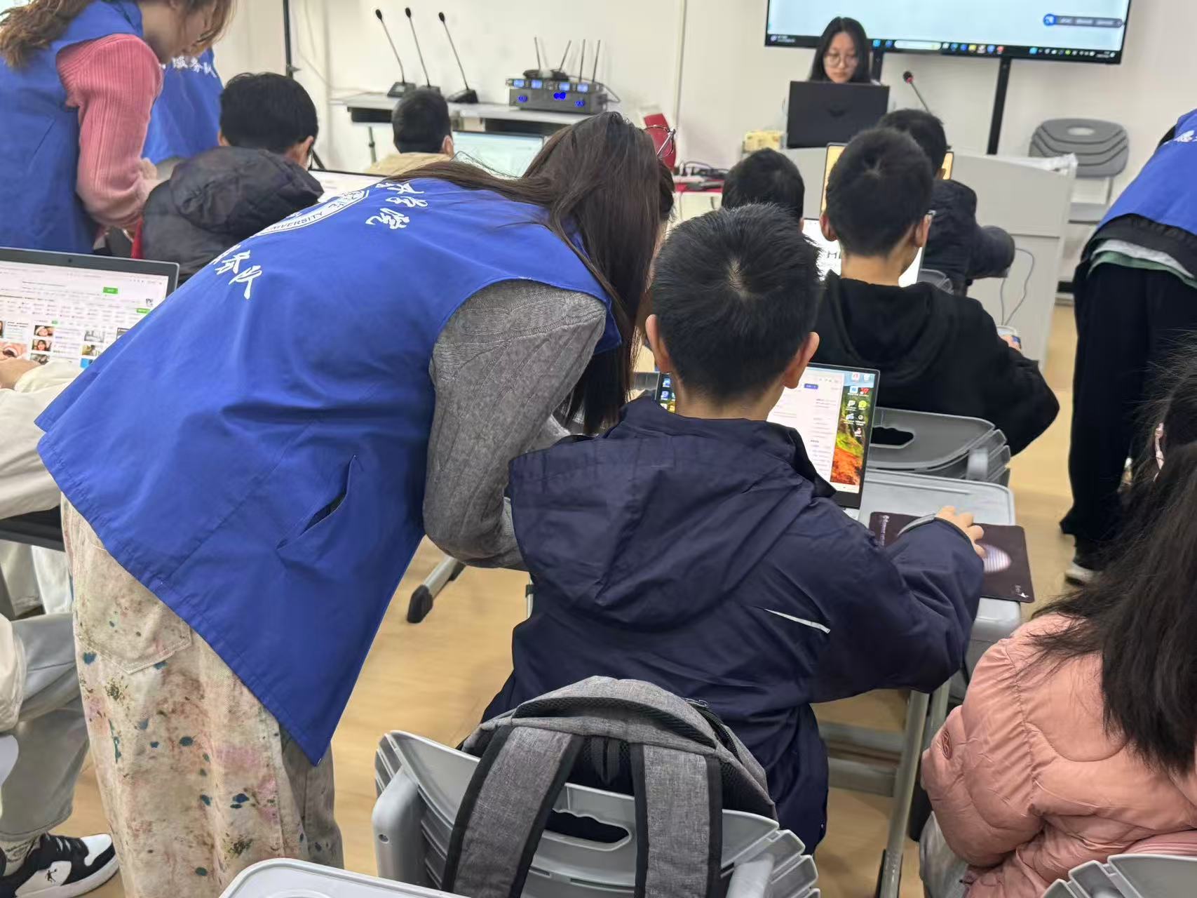 参与活动的志愿者感受颇多,其中有一位志愿者分享:“这次走进芦潮港社区党群服务站,给小朋友们讲授Scratch图形化编程课,对我而言是一段温暖又鲜活的难忘体验。课堂上,孩子们的目光紧紧锁在屏幕上,小手在积木区里飞快地拖拽、拼接,专注得连眨眼都舍不得多耽搁。我真切地感受到,这不仅是一堂简单的编程课,更像是一场生动的‘想象力启蒙’。看着这群眼里闪着光的小创作者,我深深明白,一颗关于‘探索与创造’的种子,已经悄悄在他们心里发了芽。能陪伴孩子们走过这段充满奇思妙想的编程之旅,见证他们每一次思维的跳跃与技能的提升,真的是一件无比幸福且有意义的事。”