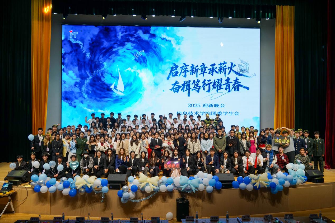 星光璀璨映初心,青春激昂赴新程。2025年12月7日,信息技术学院“怦然‘信’动”迎新晚会在雷锋礼堂盛大启幕。本次晚会以“启序新章承薪火,奋楫笃行耀青春”为主题,将技术元素与青春活力深度融合,16个形式多样、内涵丰富的节目轮番上演,为全体师生呈现了一场兼具视觉震撼与情感共鸣的文化盛宴,也为新同学们开启了与信院的浪漫青春之约。