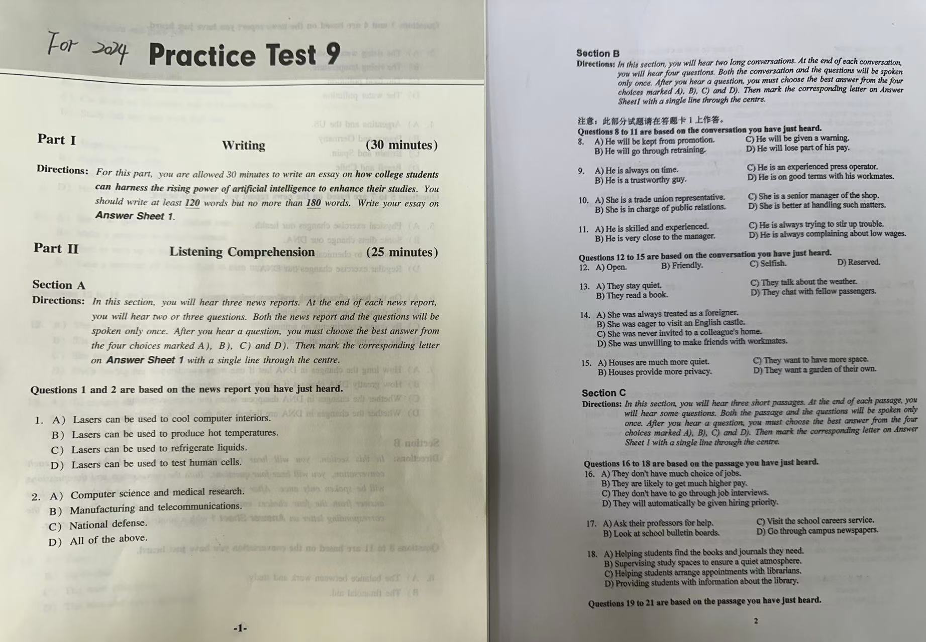 在全校上下扎实推进学风建设的浓厚氛围中,为切实提升我院学生大学英语四级考试的应试能力与实战水平,精准检验前期复习成效,营造积极向上的备考氛围,我院学习支持中心与12月7日至12月10日组织并成功举办了一场面向学院大一、大二年级全体报考学生的大学英语四级全真模拟考试。本次活动旨在通过高度仿真的实战演练,帮助学生熟悉考试流程、把握时间分配、查漏补缺知识、调整应试心态,从而为即将到来的正式考试做好充分准备,力争取得优异成绩。