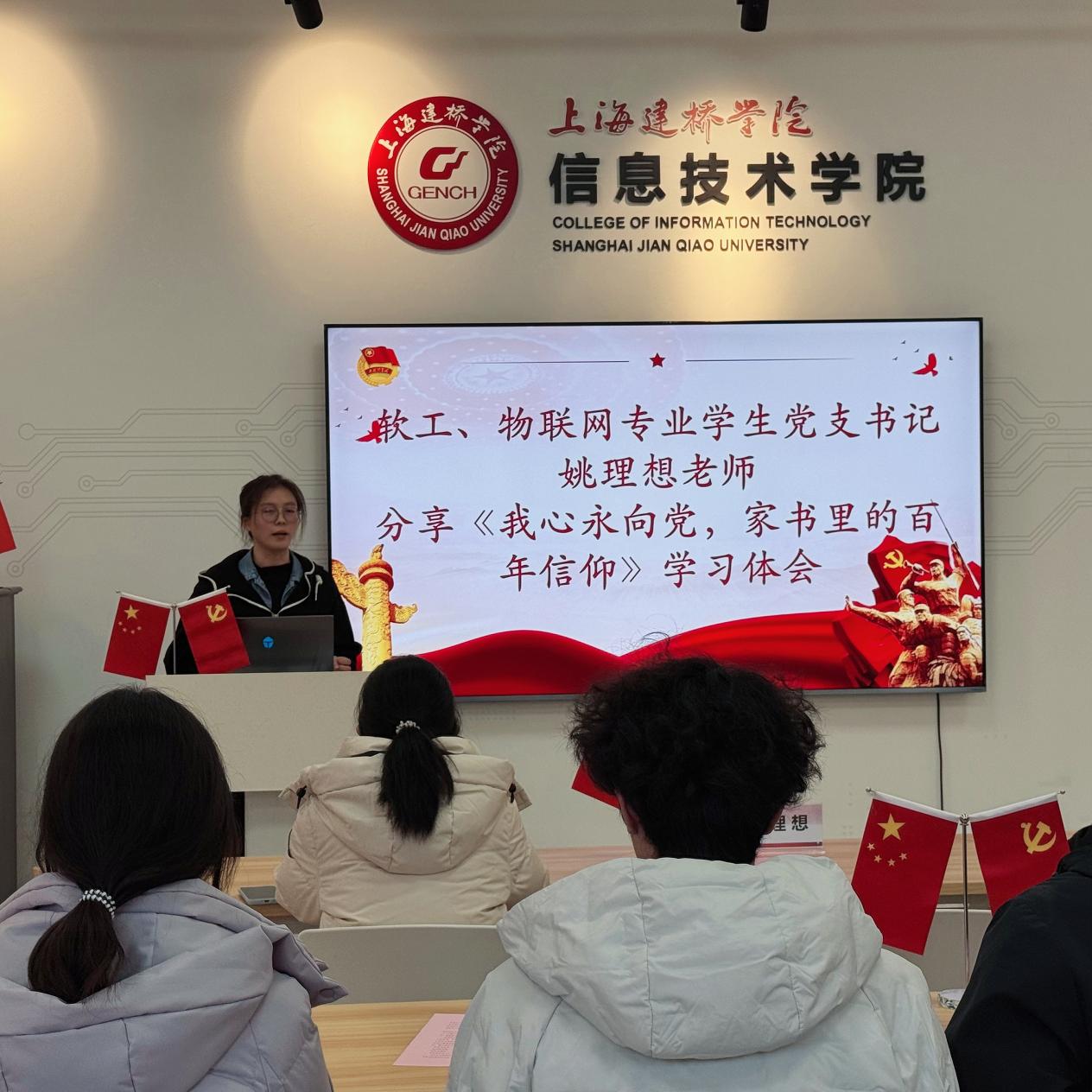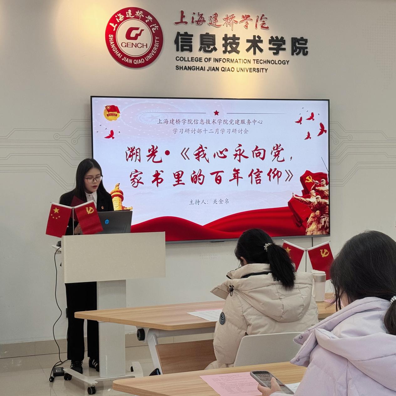 为深入学习贯彻习近平新时代中国特色社会主义思想,认真落实二十届四中全会精神,推动党史学习教育常态化长效化,引导青年学子坚定理想信念,12月19日,信息技术学院党建服务中心举办了“溯光・《我心永向党,家书里的百年信仰》”十二月读书分享会。活动由软工、物联网专业学生党支部书记姚理想老师领读,学院部分入党积极分子、学生党员代表共同参与。