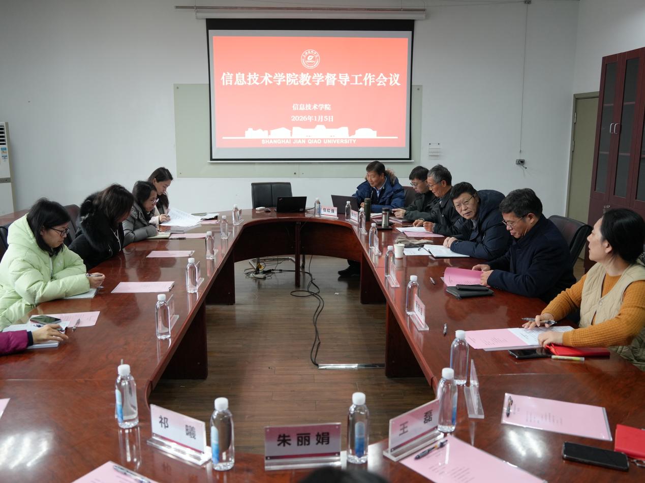 为深入贯彻学校教学督导工作改革精神,切实提升人才培养质量,信息技术学院于2026年1月5日在205会议室召开教学督导专题工作会议。教务处曾宪文教授受邀出席,学院领导、质量管理办公室督导成员、及各系系主任出席会议,共同研讨新形势下教学督导工作的重点与实施路径。