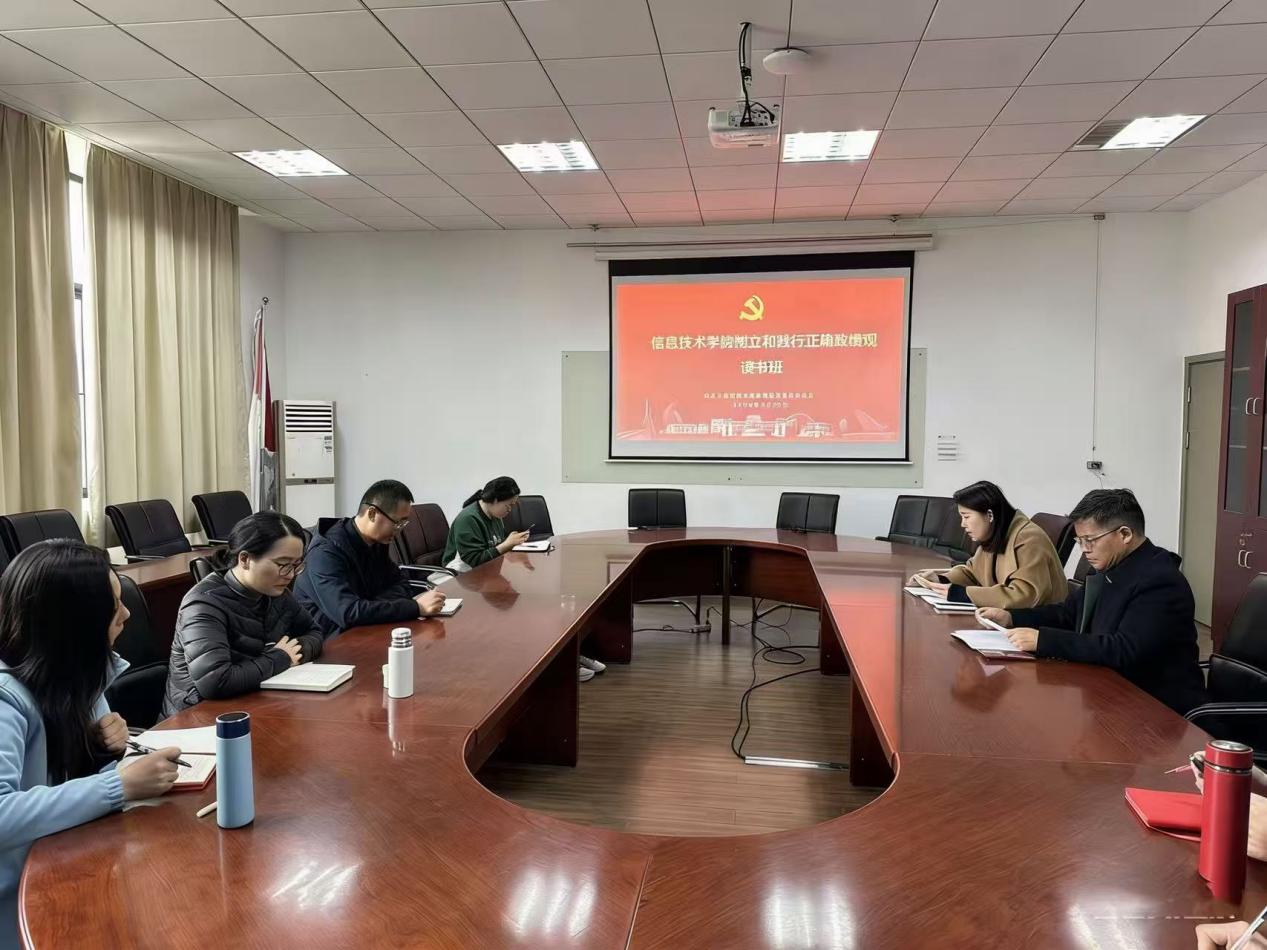 为深入学习贯彻习近平总书记关于树立和践行正确政绩观的重要论述,全面落实党中央及学校党委学习教育部署要求,3月23日,信息技术学院在205会议室举办树立和践行正确政绩观专题读书班(第一期),学院全体班子成员参加学习,学院党委书记杜鹃主持本次活动。