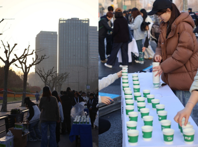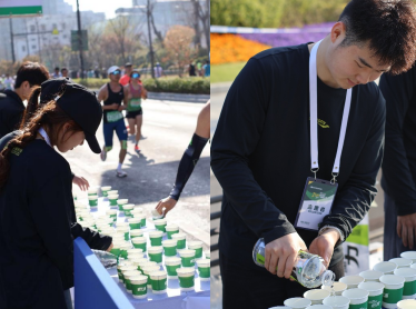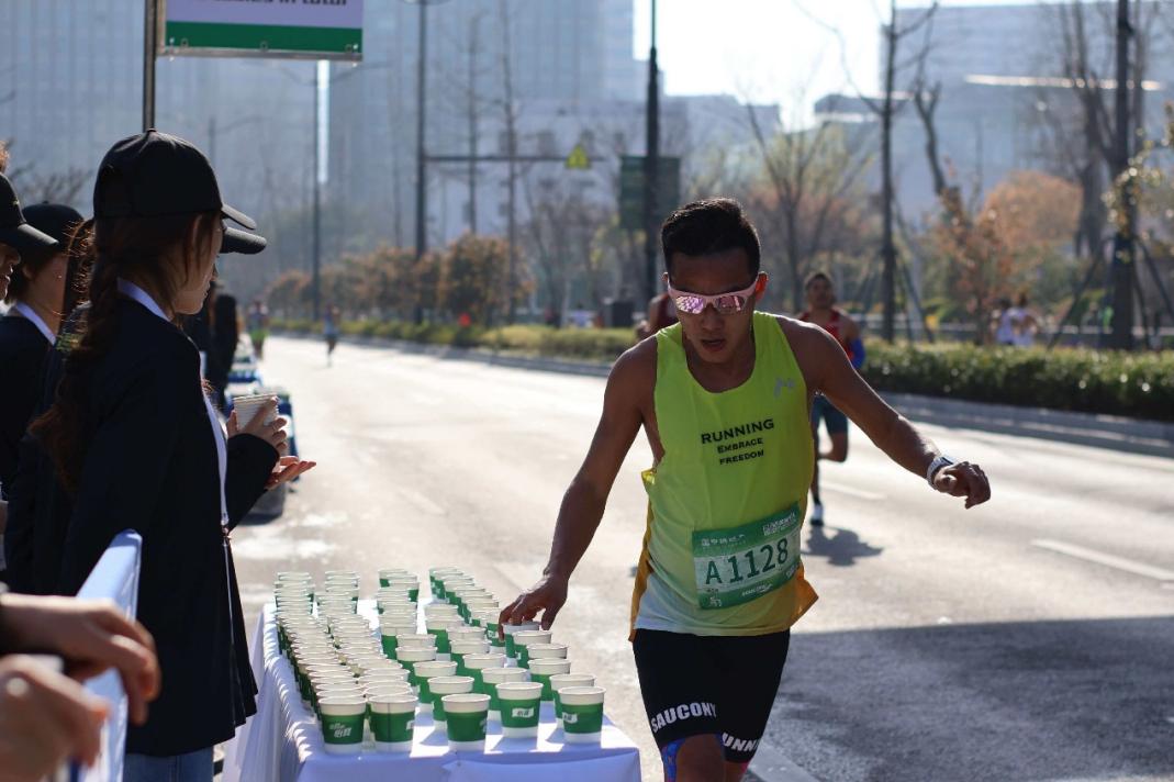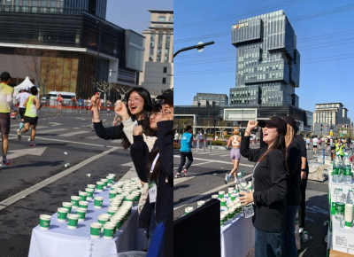 •暖心助威:一边保证每个杯中有水,一边为途经的跑者呐喊助威,用温暖笑容与铿锵口号为选手加油鼓劲。