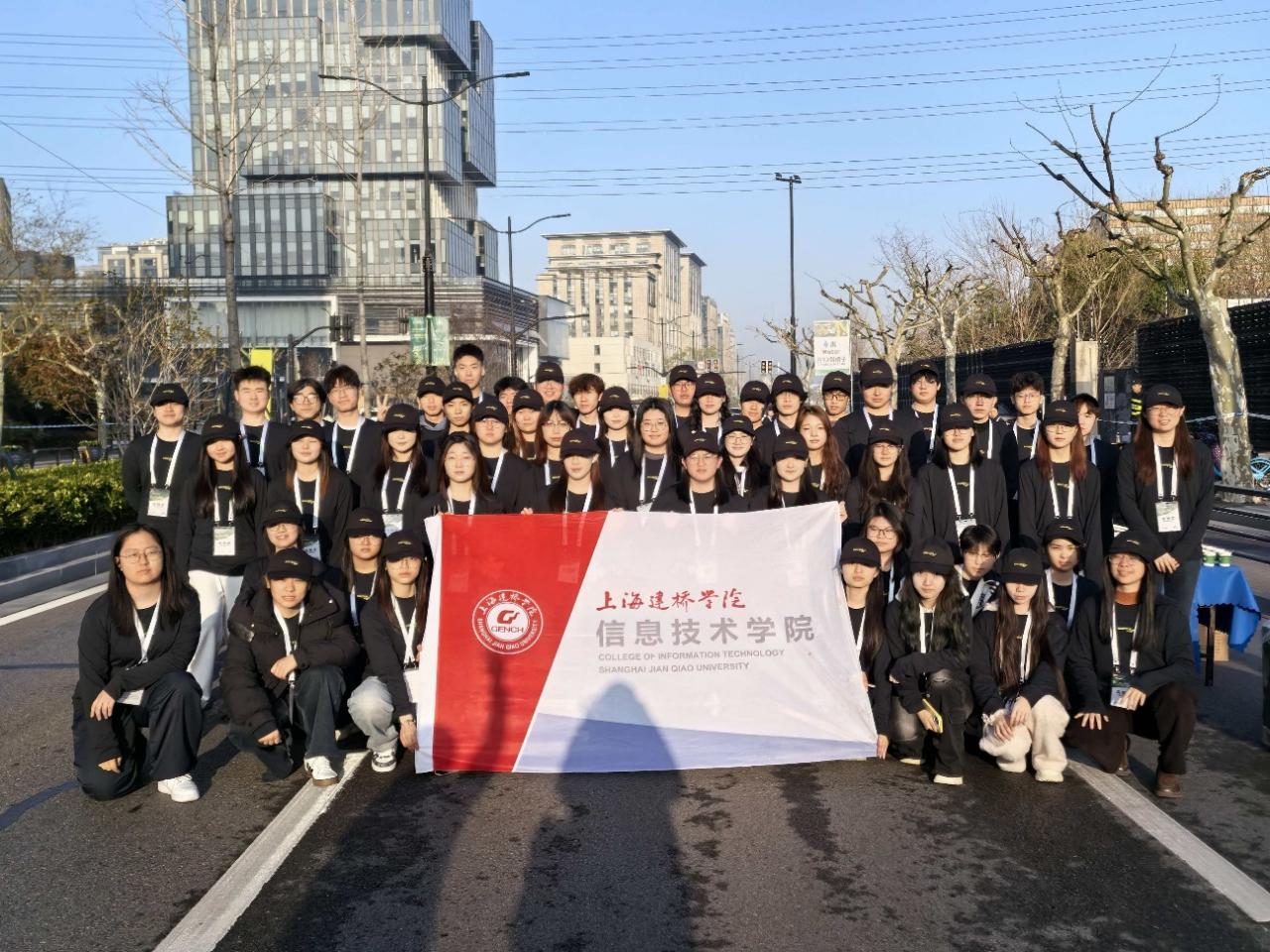 图:上海建桥学院信息技术学院志愿者团体赛事现场合影