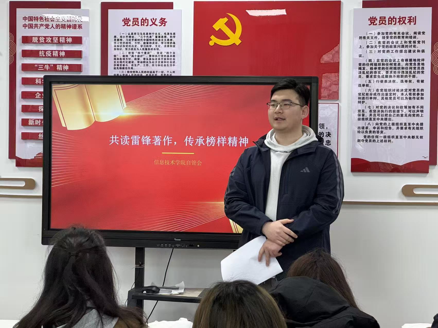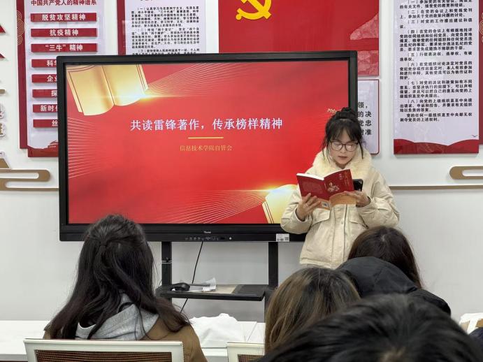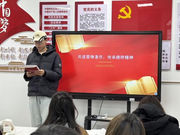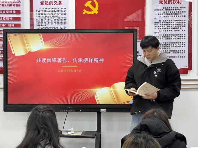 书香润心传美德,榜样引航践初心。为深入传承和弘扬雷锋精神,引导青年学子在阅读中感悟奉献力量、厚植家国情怀,信息技术学院于3月26日15:00,在北七北八共享区红色讲堂205,顺利举办“以书润心,以行践志”学雷锋主题读书分享会。在张军玮同学的引读下,同学们以书为友、以悟为桥,在经典文字中追寻雷锋足迹,在真诚分享中传承榜样精神。