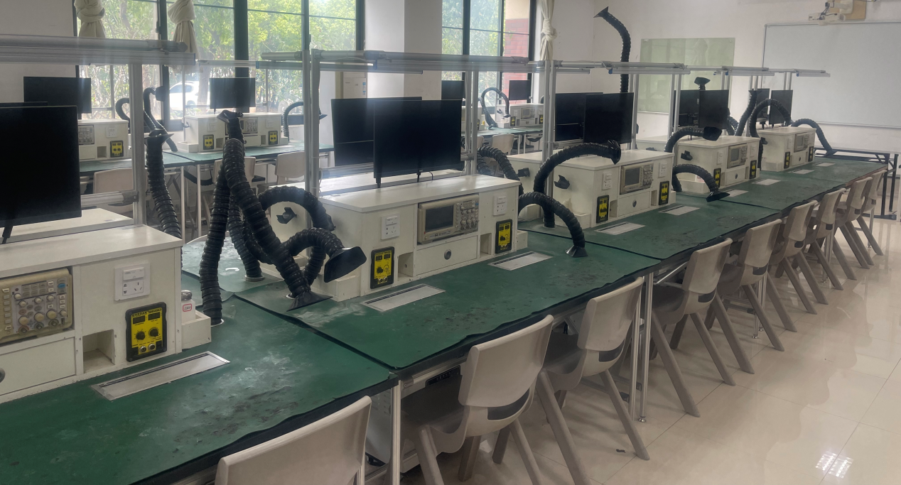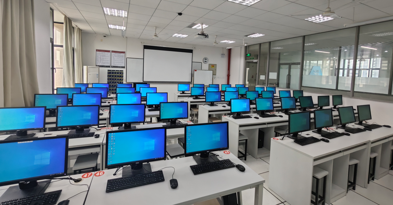 中心统一配备华为交换机、高清监控摄像机,硬件设施完善,教学软件定期更新,可满足不同课程与实验项目需求。多媒体机房侧重《移动应用开发》、《网站建设》、《深度学习》、《数据库原理》、《大数据应用》、《网络安全》等基础与综合实验,覆盖程序设计、前端开发、数据处理、网络配置等核心训练内容。专业实验室精准对接学科方向与产业需求:数字媒体类实验室配备 MR/AR 设备、动作捕捉系统,支撑虚拟现实、三维交互、视效剪辑等创作实践;物联网实验室还原智慧工厂、农业、交通等真实场景,开展传感器、数据采集、云平台管理实验;单片机、嵌入式、短距无线通信实验室专注底层开发与硬件调试;软件工程、互联网实验室强化算法、框架开发、网络运维与服务器配置;数据通信、移动通信实训室融入鸿蒙开发、AI 应用、移动通信技术;计算机组装实训室侧重硬件维修与实操能力培养。