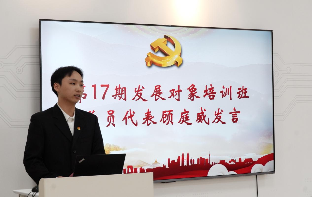 学员代表顾庭威作表态发言。他表示,能够成为发展对象参加集中培训,既是光荣更是责任。全体学员将珍惜此次“补钙”“充电”的机会,端正态度、严明纪律,带着问题学、带着责任学,在学思践悟中解决好“入党为了什么、入党后怎么做”的根本问题,以知行合一的实际行动争取早日成为一名合格的共产党员。
