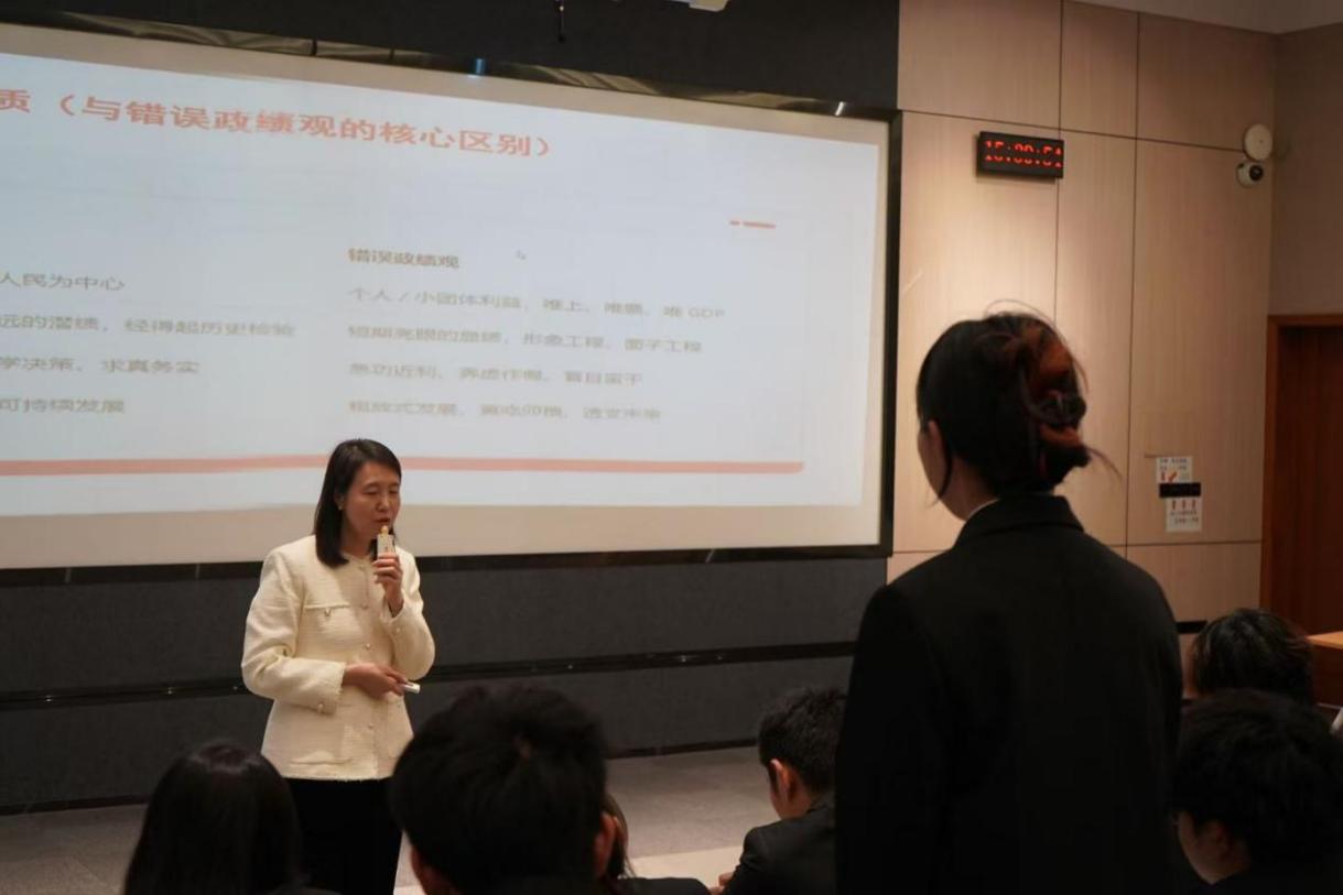 党课上,杜鹃书记围绕正确政绩观的本质内涵、时代价值、践行路径及错误倾向警示,结合青年学生成长规律与党员发展要求,系统阐释了政绩观对于青年成长成才的重要意义。她指出,政绩观并非领导干部专属,而是青年学生对“做什么事、怎么做、做到什么程度”的根本价值取向,是人生航向与成长道路的核心指引。青年作为国家建设的中坚力量、党的事业的接班人,树立和践行正确政绩观,是成长路上必须修好的必修课,直接关系未来发展方向与责任担当。