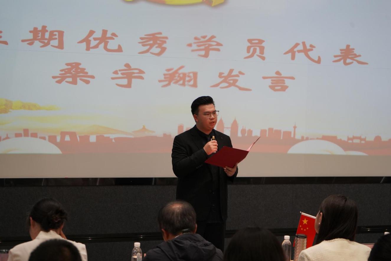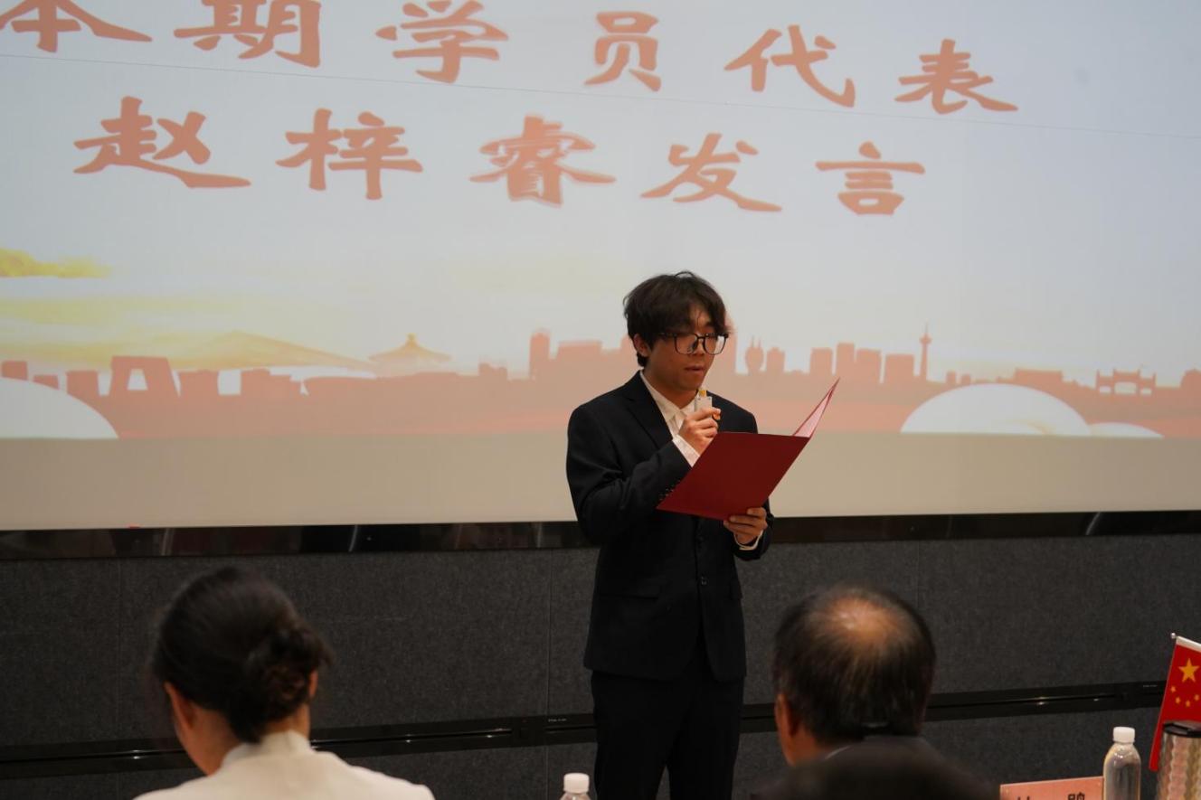 本期学员代表赵梓睿同学代表全体参训学员作出郑重承诺,他表示,全体学员将倍加珍惜本次来之不易的培训机会,始终以端正的学习态度、务实的行动作风,主动作为、脚踏实地,认真对待每一次培训课程、每一场学习研讨,全力汲取理论知识、提升政治素养,以实际行动践行向党组织靠拢的决心。